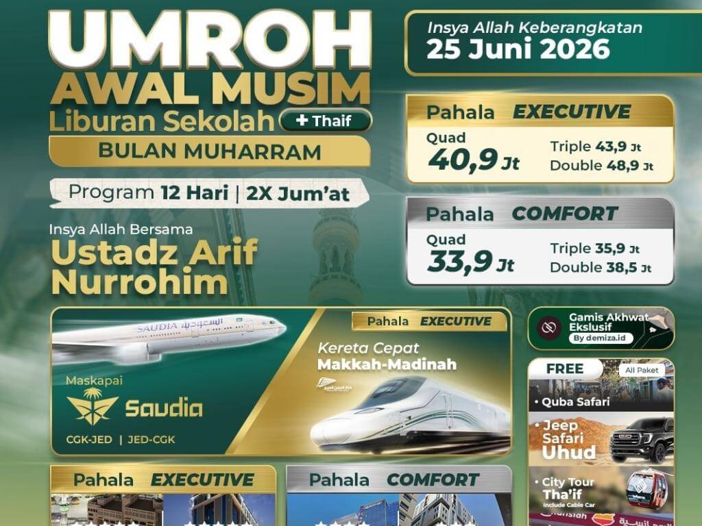 [EXECUTIVE] UMROH AWAL MUSIM BULAN MUHARRAM 2X JUM'AT + THAIF (LIBURAN SEKOLAH) 25 JUNI 2026